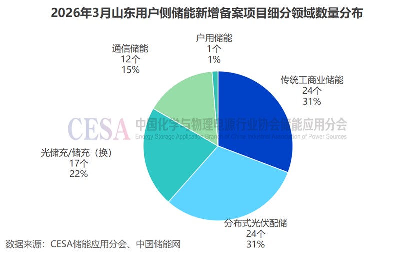 3月山東共新增備案了78個(gè)用戶側(cè)儲(chǔ)能電站項(xiàng)目,包括24個(gè)傳統(tǒng)工商業(yè)儲(chǔ)能項(xiàng)目、17個(gè)光儲(chǔ)充/儲(chǔ)充(換)電站項(xiàng)目、24個(gè)分布式光伏配儲(chǔ)項(xiàng)目、12個(gè)通信儲(chǔ)能電站項(xiàng)目、1個(gè)戶用儲(chǔ)能項(xiàng)目。