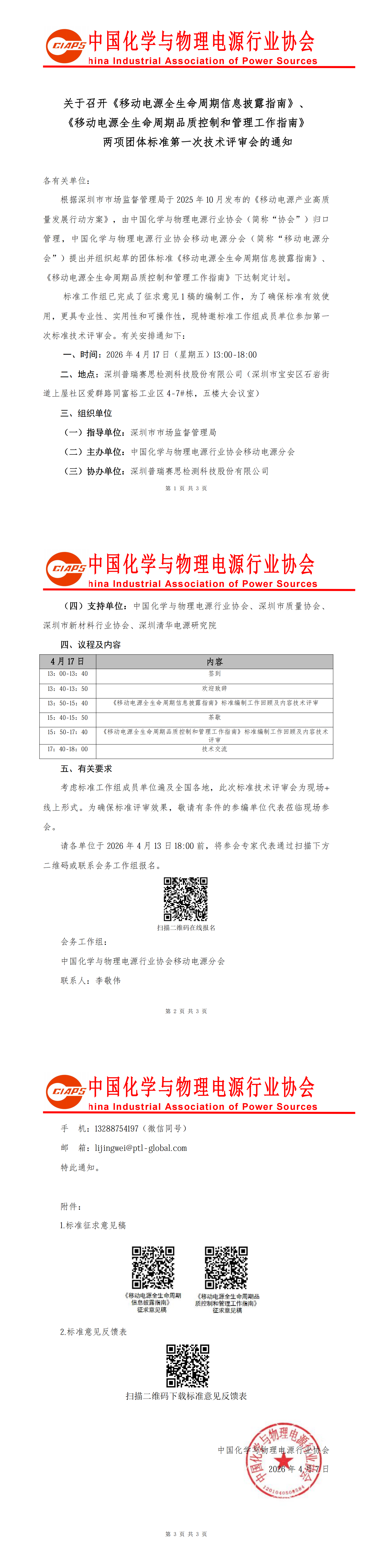 關(guān)于召開《移動電源全生命周期信息披露指南》、《移動電源全生命周期品質(zhì)控制和管理工作指南》兩項團體標(biāo)準(zhǔn)第一次技術(shù)評審會的通知