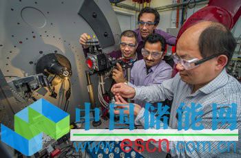 中國儲能網(wǎng)訊:布魯克黑文實驗室的王馮教授鄭將陰極材料樣品諸如XRD衍射儀的樣品托里,地點為NSLS II。組里的其他成員(從左到右)為Jianming Ba, Eric Dooryhee 和Sanjit Ghose。