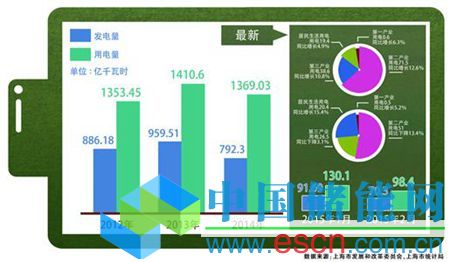 2014年上海的用電量與發(fā)電量雙雙滑落,降幅明顯。下滑原因顯而易見(jiàn):工業(yè)領(lǐng)域增速放緩明顯,制造業(yè)企業(yè)等傳統(tǒng)用電大戶呈現(xiàn)向外轉(zhuǎn)移趨勢(shì),用電量的“晴雨表”中,可以看到上海產(chǎn)業(yè)轉(zhuǎn)型的陣痛。向服務(wù)經(jīng)濟(jì)轉(zhuǎn)型中的上海,2014年第三產(chǎn)業(yè)占全市生產(chǎn)總值的比重已達(dá)64.8%,服務(wù)業(yè)連續(xù)數(shù)年的快速增長(zhǎng),已使上海服務(wù)經(jīng)濟(jì)接近于發(fā)達(dá)國(guó)家城市的70%-80%水平??梢灶A(yù)見(jiàn),在這一轉(zhuǎn)型過(guò)程中,傳統(tǒng)制造業(yè)用電量的下降,將使得上海用電量在較長(zhǎng)一段時(shí)間內(nèi)難以快速回升。