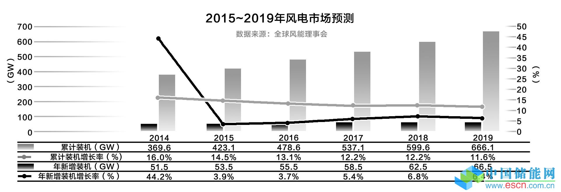 根據(jù)全球風(fēng)能理事會(huì)的最新預(yù)測(cè),未來3年內(nèi),全球風(fēng)電年新增裝機(jī)容量將繼續(xù)保持5000萬千瓦水平,具體為:2015年新增5350萬千瓦,2016年新增5550萬千瓦,2017年新增5850萬千瓦。到2018年有望突破6000萬千瓦,達(dá)到6250萬千瓦的年新增裝機(jī)容量。
