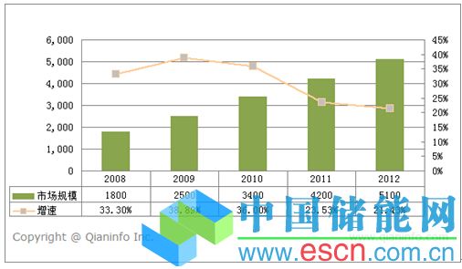 圖表12008-2012年光伏行業(yè)市場(chǎng)規(guī)模及增速(單位:億元)