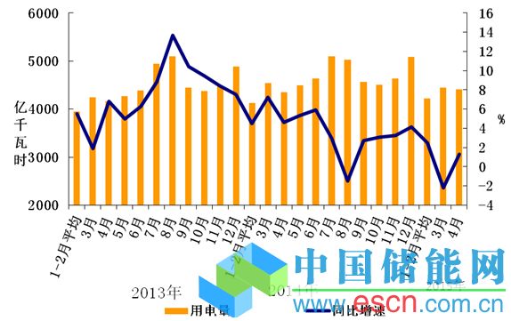 中國儲(chǔ)能網(wǎng)訊:5月18日,中國電力聯(lián)合會(huì)發(fā)布最新統(tǒng)計(jì)數(shù)據(jù)顯示:1-4月份,全國電力供需總體寬松。二產(chǎn)用電量持續(xù)不振,三產(chǎn)和居民用電量增速明顯提升,全社會(huì)用電量小幅增長(zhǎng),增速同比明顯回落。工業(yè)用電量同比下降,輕重工業(yè)走勢(shì)分化。高載能行業(yè)用電量增長(zhǎng)乏力,建材、鋼鐵用電量同比下降,有色用電量增速回升。發(fā)電裝機(jī)容量快速增長(zhǎng),大幅高于發(fā)電量增速,水電利用小時(shí)同比提高,火電和核電利用小時(shí)同比顯著下降,電源新增容量高于同期,火電在建規(guī)模同比明顯增加。