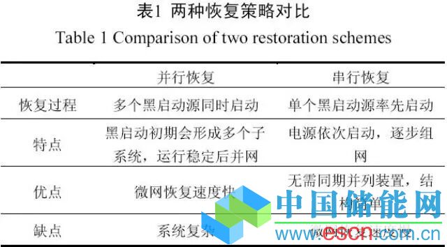 所謂微網(wǎng)黑啟動(dòng)(Black Start),指在整個(gè)微網(wǎng)因外部或內(nèi)部故障停運(yùn)進(jìn)入全黑狀態(tài)后,不依靠大電網(wǎng)或其他微網(wǎng)的幫助,僅通過(guò)啟動(dòng)微網(wǎng)內(nèi)部具有黑啟動(dòng)能力的微源,進(jìn)而帶動(dòng)微網(wǎng)內(nèi)無(wú)黑啟動(dòng)能力的微源,逐步擴(kuò)大系統(tǒng)的恢復(fù)范圍,最終實(shí)現(xiàn)整個(gè)微網(wǎng)的重新啟動(dòng)。