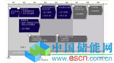 該研究共分為三個(gè)階段,分別為各環(huán)節(jié)服務(wù)和技術(shù)的定性、靈活和潛在的儲(chǔ)能需求的定量分析和經(jīng)濟(jì)效益的定性與定量分析。首先是定義各項(xiàng)環(huán)節(jié),收集戰(zhàn)略要素并完成各個(gè)環(huán)節(jié)的建模工作;確定能源愿景,形成概要并執(zhí)行;明確需求與服務(wù)。其次,對(duì)電氣系統(tǒng)、冷/熱網(wǎng)的需求進(jìn)行評(píng)價(jià),并評(píng)估其潛在市場。同時(shí),結(jié)合技術(shù)問題,構(gòu)建儲(chǔ)能體系并提供備用解決方案。最后,根據(jù)構(gòu)建的經(jīng)濟(jì)模型分析儲(chǔ)能方案,并分析儲(chǔ)能系統(tǒng)對(duì)整個(gè)工業(yè)的影響。
