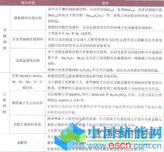 表1鈉離子電池關鍵材料