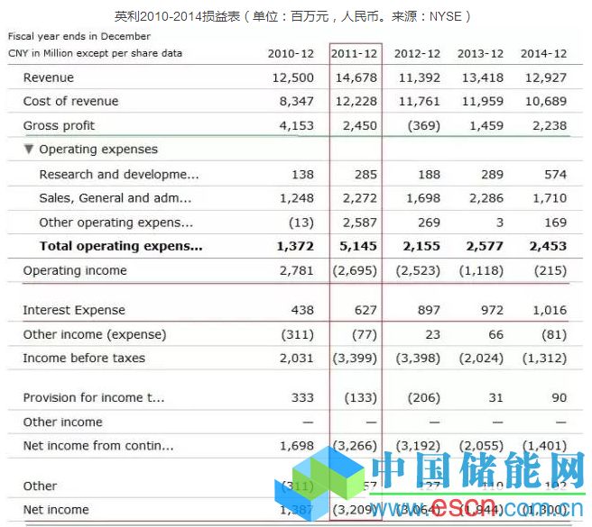英利2010-2014損益表(單位:百萬元,人民幣。來源:NYSE)