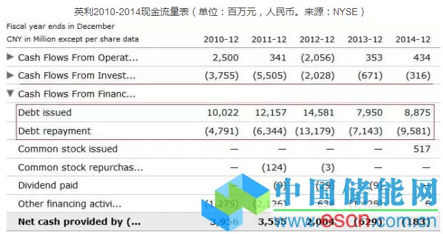 英利2010-2014現(xiàn)金流量表(單位:百萬元,人民幣。來源:NYSE)