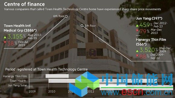 在數(shù)十名在康健科技中心注冊的公司工作的董事中,有一個人非常突出。許家驊(Ronnie Hui)是康健國際醫(yī)療集團(tuán)(Town Health International Medical Group)行政總裁,該集團(tuán)是這棟辦公大樓的所有者。他曾擔(dān)任漢能薄膜行政總裁,后又擔(dān)任財務(wù)董事,直至去年。