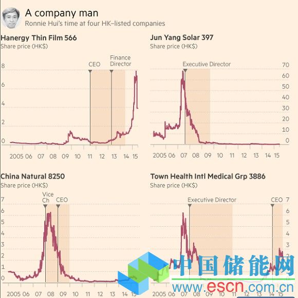 他選擇工作過的公司都曾令人興奮。除了在他任職期間股價上漲超過一倍的漢能薄膜之外,許家驊擔(dān)任董事的其他幾家公司也經(jīng)歷了市值的暴漲及隨后的下跌。