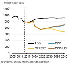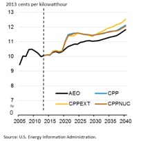 (AEO:無清潔能源計(jì)劃;CPP:清潔能源計(jì)劃;CPPEXT:清潔能源計(jì)劃+排放限制;CPPNUC:清潔能源計(jì)劃和核電擴(kuò)張。圖源:美國(guó)能源信息署)