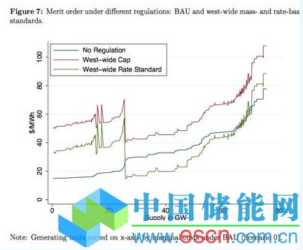 Bushnell等四位能源和環(huán)境經(jīng)濟(jì)學(xué)家在2014年年底曾經(jīng)對(duì)2014年版本的清潔電力計(jì)劃出評(píng)估。從這個(gè)評(píng)估中,我們能夠大致看到。和碳交易政策(Cap)相比,清潔電力計(jì)劃(Rate standard)讓西部低價(jià)天然氣的成本更低。因此,除了有利于清潔能源,清潔電力計(jì)劃更加有利于天然氣機(jī)組。