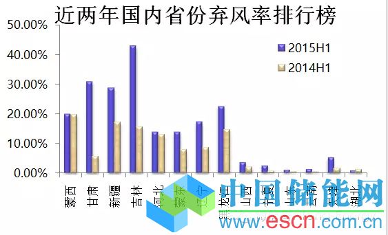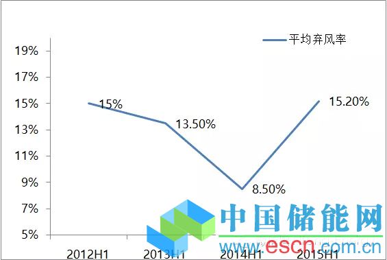 隨著政府出臺(tái)一系列政策鼓勵(lì)風(fēng)電并網(wǎng)消納,棄風(fēng)率最近幾年呈逐步下降趨勢(shì)。2012年上半年我國(guó)棄風(fēng)率在15%左右,2013年上半年降至13.5%,而2014年上半年更是進(jìn)一步降至8.5%,而今年上半年棄風(fēng)率卻大幅飆回15.2%,創(chuàng)近三年來(lái)同期新高,遠(yuǎn)遠(yuǎn)超過(guò)行業(yè)公認(rèn)的5%的合理區(qū)間。