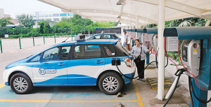 “司機(jī)師傅們大多會(huì)選擇晚上來(lái)充電,比較便宜劃算”,小崔說(shuō)。據(jù)統(tǒng)計(jì),每次汽車充滿電需要一個(gè)多小時(shí),平均每次花費(fèi)五六十元,充飽電的汽車能跑330公里。對(duì)于充電站數(shù)量少這一問(wèn)題,小崔說(shuō):“確實(shí)是這樣,這種新能源汽車剛剛推出,充電設(shè)施還不是很完善,但是都在進(jìn)一步推進(jìn)當(dāng)中,”日后會(huì)有更多的充電點(diǎn)將建立起來(lái),“我們下一步會(huì)在曲江和浐灞建立充電站”。
