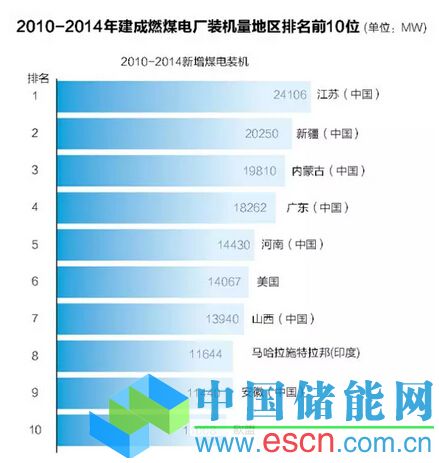 僅江蘇省,在2010年到2014年期間建成的燃煤裝機(jī)接近同期美國和歐盟建成燃煤電廠的裝機(jī)容量總和,達(dá)到24160MW。