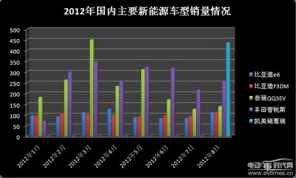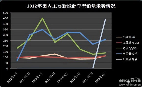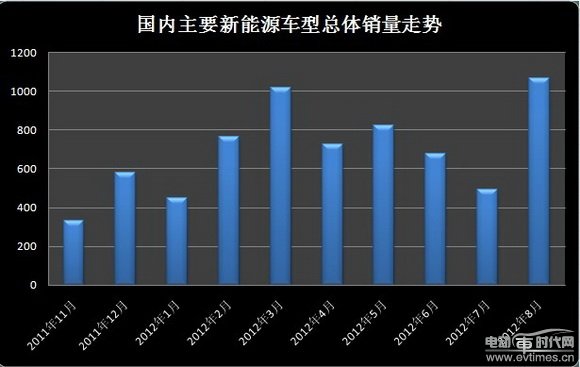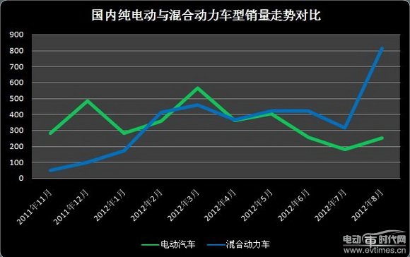電動(dòng)汽車時(shí)代網(wǎng)援引中國汽車工業(yè)協(xié)會(huì)數(shù)據(jù)統(tǒng)計(jì)得知,2012年8月份,國內(nèi)五個(gè)主要新能源汽車品牌(不含進(jìn)口車)共售出1065輛,其中純電驅(qū)動(dòng)轎車253臺(tái),混合動(dòng)力轎車售出812臺(tái)(分別來自豐田汽車的兩個(gè)合資品牌——一汽豐田和廣汽豐田)。純電動(dòng)車與混動(dòng)車銷售數(shù)字的此消彼長,實(shí)際上也是產(chǎn)業(yè)發(fā)展大轉(zhuǎn)向的生動(dòng)體現(xiàn)。