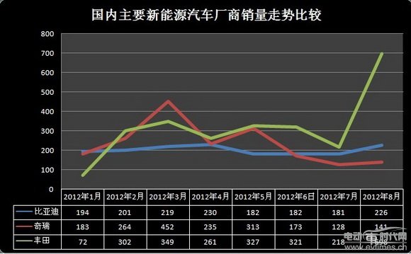 進(jìn)入8月份,隨著廣汽豐田凱美瑞-尊瑞的陸續(xù)到貨,我國節(jié)能新能源汽車市場終于迎來了大逆轉(zhuǎn),整個(gè)8月五款主要新能源車共售出1065輛(較3月份的1020輛多出45輛),而812輛混合動(dòng)力轎車的銷量(2012年月度紀(jì)錄)也令純電動(dòng)車253輛的數(shù)字黯然失色。然而好景不長,由于突如其來的“釣魚島”事件的影響,日系汽車銷量遭到較大影響,而日系合資品牌旗下的混合動(dòng)力車型也難免“殃及池魚”。而由于國內(nèi)自主混動(dòng)車的羸弱,想要在日系車受到打擊的空檔期收復(fù)失地的難度相當(dāng)?shù)拇?,混合?dòng)力車的強(qiáng)勢反彈恐怕會(huì)是“曇花一現(xiàn)”。