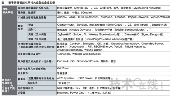 在政府巨額投資、以及對網(wǎng)絡(luò)設(shè)備投資表現(xiàn)積極的電力運營商的影響下,美國的通信/IT設(shè)備廠商間掀起了一股“智能電網(wǎng)旋風”(表1)。