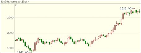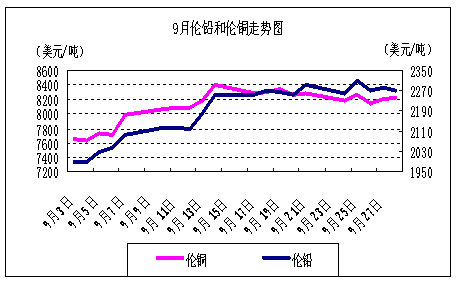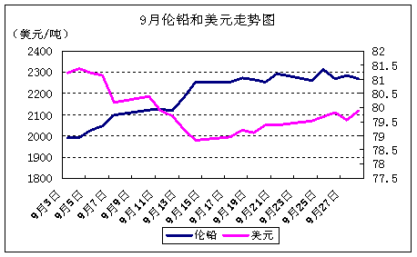 2012年9月份,倫鉛一路上揚,截至本月收盤較上月上漲306美元,漲幅15.58%,最高觸及2322美元,最低1956美元,本月報收2270美元,是近一年來最大的單月漲幅。