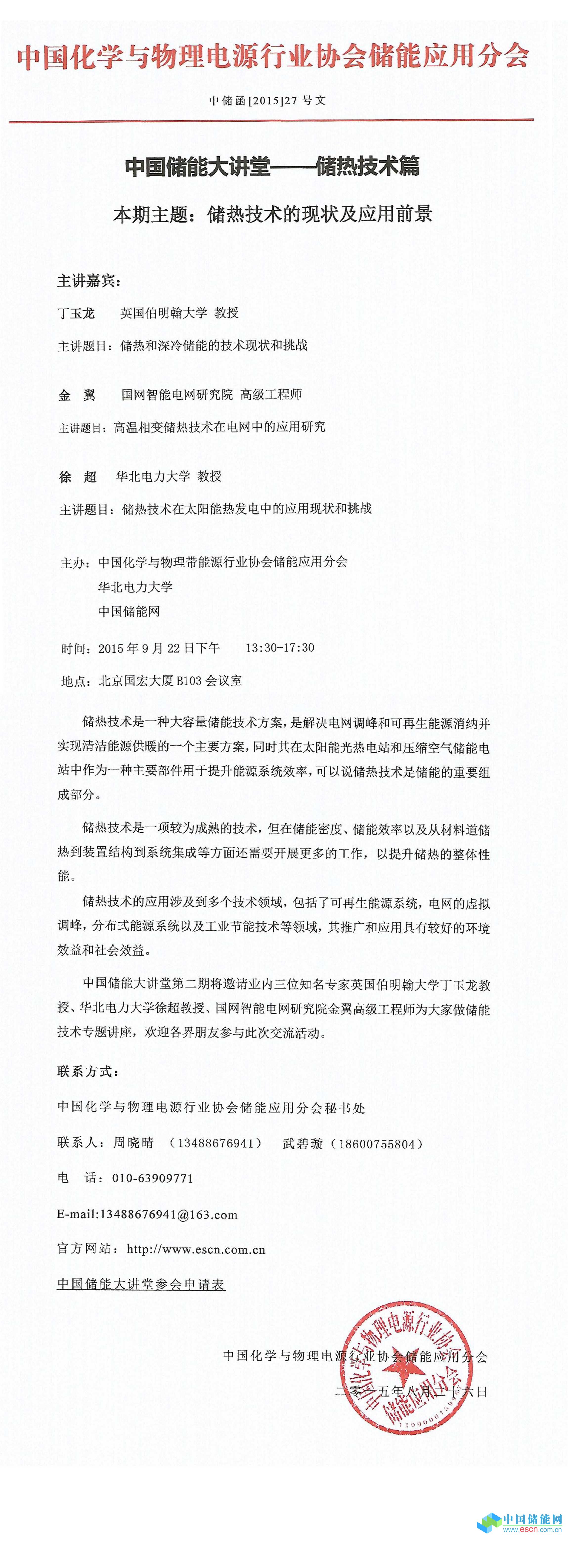 中國儲(chǔ)能大講堂參會(huì)申請(qǐng)表