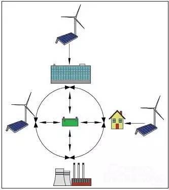 ■該簡化的智能電網(wǎng)圖給出了能源存儲是如何允許可再生能源納入到電網(wǎng)中,成為智能電網(wǎng)的重要部分的。在每個連接點,在不同區(qū)域的分配、傳輸和生產(chǎn)系統(tǒng),都有機會實現(xiàn)由智能電網(wǎng)技術提供的嵌入式智能、監(jiān)視、控制、信息流的機會。圖片來源:Triad Consulting Engineers公司