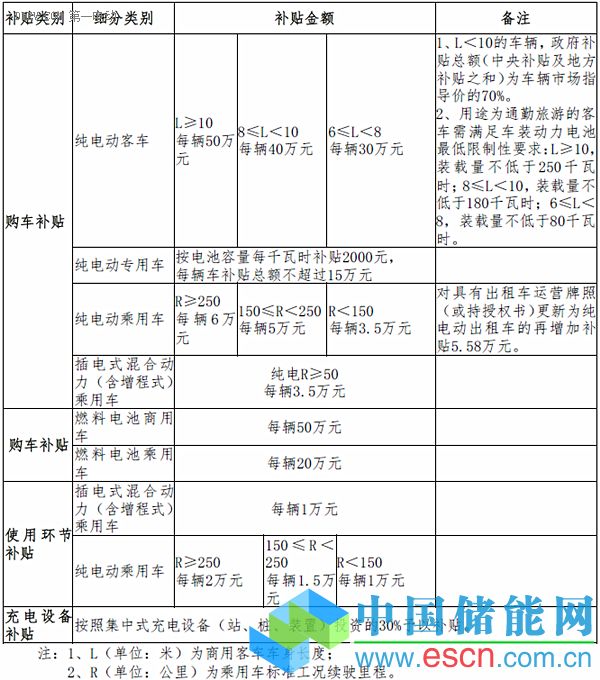 車輛購(gòu)置、使用(公交車使用環(huán)節(jié)除外)及充電設(shè)備投資補(bǔ)貼標(biāo)準(zhǔn)