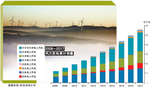 報(bào)告預(yù)測(cè),到2017年,全球在風(fēng)電項(xiàng)目的投資將從2011年的770億美元增至1530億美元。這6年間,新裝機(jī)的累計(jì)投資額有望達(dá)到8200億美元,全球風(fēng)電裝機(jī)總?cè)萘?,包括陸上和海上?xiàng)目,將從2011年的2.36億千瓦上升到5.63億千瓦。