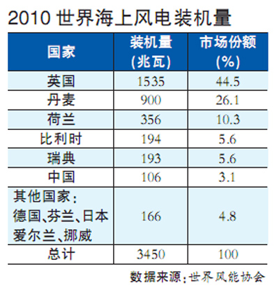 2010年歐洲新安裝了308臺海上風機,海上風電裝機容量較2009年增加51%,創(chuàng)下歐洲海上風電增長的新紀錄。