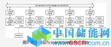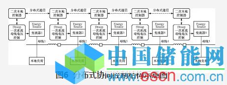 為解決集中式二次控制所帶來的問題,Josep等人提出圖5所示的集中通信與分布式控制的協(xié)調(diào)控制策略。該方法中,進(jìn)行二次協(xié)調(diào)的控制器嵌入至各單元的本地控制系統(tǒng)當(dāng)中,而不是由圖4所示的集中控制器來進(jìn)行控制。各分布式電源控制系統(tǒng)從低帶寬通信網(wǎng)絡(luò)接收到的信息不再類似由集中控制器下發(fā)的控制調(diào)整參考指令,而是直流微電網(wǎng)內(nèi)其余各分布式電源出口電壓、輸出功率等信息。雖然協(xié)調(diào)控制同樣依賴于全局通信,但協(xié)調(diào)控制算法在分布式電源或儲能單元的本地控制系統(tǒng)當(dāng)中執(zhí)行,因此相比于集中控制系統(tǒng)結(jié)構(gòu),該方法的可靠性將得到提高。