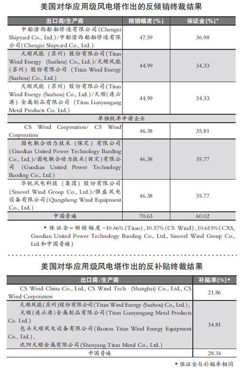 根據(jù)相關(guān)法律程序,美國(guó)國(guó)際貿(mào)易委員會(huì)(USITC)將于2013年1月31日對(duì)該案作出反傾銷和反補(bǔ)貼產(chǎn)業(yè)損害終裁,若為“肯定性”裁決,美國(guó)商務(wù)部將對(duì)涉案產(chǎn)品發(fā)布反傾銷和反補(bǔ)貼征稅令。該委員會(huì)在今年2月份曾以5比0的投票初步裁定中國(guó)與越南的風(fēng)電塔傾銷傷害了美國(guó)生產(chǎn)商的利益。