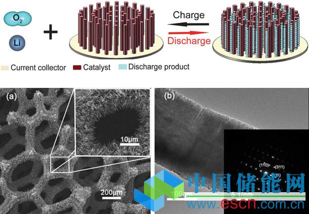 溫兆銀帶領的課題組設計和制備成功具有(111)面優(yōu)先生長的Co3O4無支撐催化劑,并獲得了優(yōu)異的容量、極化等電化學性能,研究結果發(fā)表在Energy & Environmental Science(2011,4, 4727),劉建軍帶領的研究小組將第一性原理計算與熱力學分析結合建立O2/Li2O2/Co3O4的三相界面模型,揭示了Co3O4(111)面具有高催化活性的機制,進一步驗證了表面酸性與催化活性關系的理論預測。研究成果發(fā)表在美國化學學會的刊物ACS Catalysis(2015, 5, 73)上。