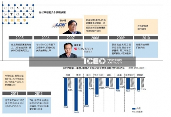 過去十年來,如果有一個行業(yè)籠罩的光環(huán)能與互聯(lián)網(wǎng)相媲美,一定是光伏;如果有一個行業(yè)的造富能力能與互聯(lián)網(wǎng)相媲美,一定是光伏;如果有一個行業(yè)吸引資本的能力能與互聯(lián)網(wǎng)相媲美,一定是光伏;而如果有一個產(chǎn)業(yè)激發(fā)地方政府的追逐熱情超過房地產(chǎn),一定還是光伏。尚德與賽維曾經(jīng)是這個朝陽產(chǎn)業(yè)中生命力最旺盛的兩家代表性企業(yè),可并稱光伏“雙雄”。兩家企業(yè)的創(chuàng)始人—施正榮和彭小峰都是新生代企業(yè)家,他們本人,及其所創(chuàng)建的公司,對行業(yè)前期發(fā)展起到了標(biāo)桿作用。