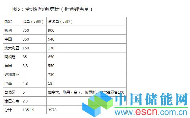 圖5:全球鋰資源統(tǒng)計(折合鋰當量)