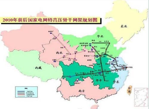 2010年,國家特高壓電網(wǎng)將在華北、華中和華東地區(qū)形成晉東南~南陽~荊門~武 漢~蕪湖~杭北~上海~無錫~南~徐 州~安陽~晉東南雙環(huán)網(wǎng)作為特高壓主網(wǎng) 架;西北、華北火電通過蒙西~北~石家 莊~安陽以及蒙西~陜北~晉東南2個獨(dú)立 送電通道注入特高壓主網(wǎng),西南水電通過 樂山~重慶~恩施~荊門雙回路通道注入 特高壓主網(wǎng)。 ?