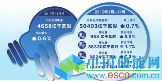 11月第三產(chǎn)業(yè)用電量為566億千瓦時,同比增長9.4%,保持了明顯的高速增長趨勢。這一數(shù)據(jù)比10月份的554億千瓦時增長6%。第三產(chǎn)業(yè)雖然占全社會總用電量的比例還比較低,但連續(xù)保持高速增長的勢頭,正是經(jīng)濟新常態(tài)下拉動發(fā)展的內(nèi)生動力。