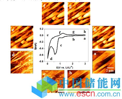 中科院寧波材料所所屬新能源所沈彩博士及其研究團隊最近通過利用原位電化學原子力顯微鏡實時研究了以碳酸乙烯酯(EC)和氟代碳酸乙烯酯(FEC)為基礎電解液的SEI膜的生長過程,發(fā)現(xiàn)這兩種電解液所形成的SEI膜在成膜電位、致密性、穩(wěn)定性和厚度上區(qū)別顯著,結合XPS光譜分析,研究者發(fā)現(xiàn)FEC電解液所形成的SEI膜中含有較多的LiF無機鹽,由于LiF具有較好的硬度和穩(wěn)定性,結合其SEI膜的致密性由此解釋了FEC電解液成膜穩(wěn)定性的機理。該研究結果發(fā)表在美國化學會期刊ACS Applied Materials & Interfaces上(2015, 7, 25441?25447)。