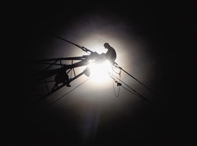 工程西昌地區(qū)裕隆段,施工人員在鐵架上做“消缺”,查看并處理可能存在的問(wèn)題。