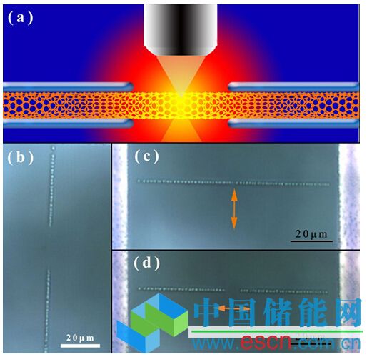 中國(guó)儲(chǔ)能網(wǎng)訊:為了研究單根碳納米管的性質(zhì)和器件性能,以及操縱碳納米管從而得到某種特殊的結(jié)構(gòu),人們往往需要在光學(xué)顯微鏡下定位某個(gè)碳納米管才能進(jìn)行光譜表征和器件構(gòu)筑。傳統(tǒng)的使用掃描電子顯微鏡來標(biāo)記定位的方法較為繁瑣且易污染碳納米管。納米材料的光學(xué)可見化可以滿足人們的需求。而已有的在碳納米管表面沉積金屬或氧化物納米顆粒的方法,雖然實(shí)現(xiàn)了光學(xué)顯微鏡下的可見化,卻可能導(dǎo)致碳納米管的性能退化,不利于碳納米管本征物性的探索。