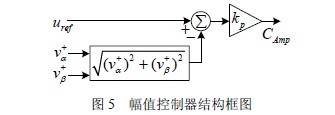系統(tǒng)在孤島模式下運(yùn)行時(shí),要想鎖相環(huán)能夠自振蕩,必須給其一個(gè)初始的振蕩條件,且為了使提取的正序信號(hào)幅值與逆變器輸出電壓幅值一致,必須要跟蹤孤島模式下逆變器輸出電壓基準(zhǔn)值,為此本文給出的鎖相環(huán)系統(tǒng)中增加一個(gè)幅值控制器,如圖5 所示。