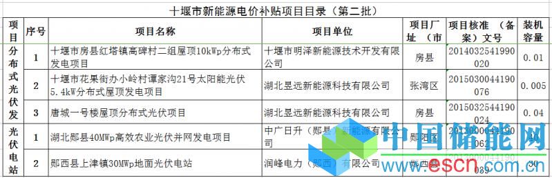 附件:十堰市新能源電價(jià)補(bǔ)貼項(xiàng)目目錄(第二批)