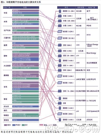 主要電池廠商瓜分市場(chǎng)隨著電動(dòng)汽車(chē)全面投放市場(chǎng),各家汽車(chē)廠商所使用的電池廠商陣容也變得明朗起來(lái)(圖2)。此前在車(chē)載鋰離子充電電池領(lǐng)域,除了獨(dú)立廠商韓國(guó)L G化學(xué)外,要數(shù)AE S C、Lithium Energy Japan、PrimearthEV Energy(PEVE)和Blue Energy等與汽車(chē)廠商合資成立的車(chē)載電池公司。