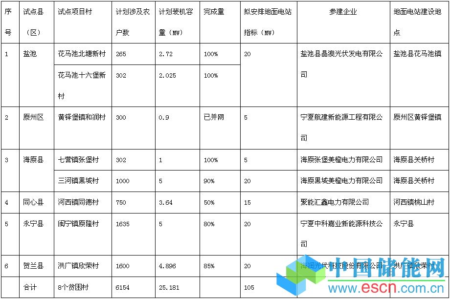 根據(jù)《國家能源局關(guān)于下達2015年光伏發(fā)電建設(shè)實施方案的通知》(國能新能[2015]73號)和《自治區(qū)扶貧辦自治區(qū)發(fā)展改革委關(guān)于組織開展2015年度光伏扶貧工程試點工作的通知》(寧扶貧辦發(fā)[2015]84號)文件精神。2015年12月,我委配合自治區(qū)扶貧辦,對6個試點縣(區(qū))項目建設(shè)完成率達到50%以上,經(jīng)過初步驗收合格的8個試點村的2.5181萬千瓦屋頂扶貧光伏電站,擬按照1:4的比例配置地面電站指標。配置總規(guī)模10.5萬千瓦。有關(guān)項目情況公告如下: