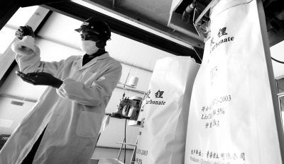中國(guó)儲(chǔ)能網(wǎng)訊:10月31日,青海鋰業(yè)公司的一名員工在碳酸鋰生產(chǎn)車間作業(yè)。