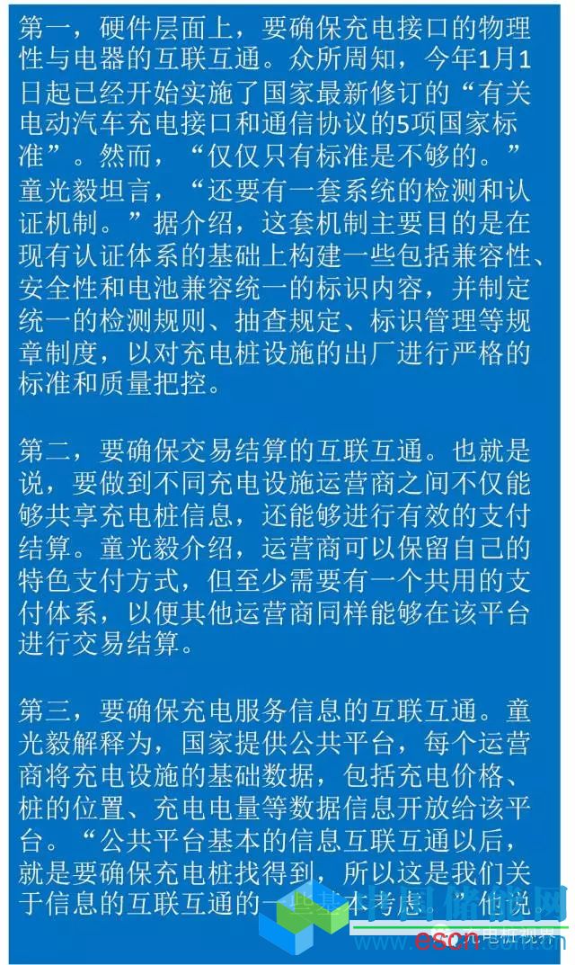 “所謂充電基礎(chǔ)設(shè)施的互聯(lián)互通,就是充分發(fā)揮充電設(shè)施的利用效率,最大程度為用戶提供充電的便利,努力實現(xiàn)各個已建樁之間、各個運營商之間信息的共享、共用,確保做到有樁找得到、充得上、能支付。”國家能源局電力司副司長童光毅在2016年中國電動汽車百人會上表示。而如何進一步實現(xiàn)互聯(lián)互通,他提出了三個層次。