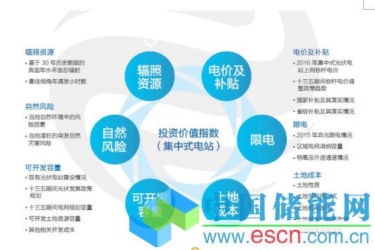 針對以上行業(yè)痛點(diǎn),遠(yuǎn)景能源與中國氣象局風(fēng)能太陽能資源中心等部門結(jié)合輻照資源、電價(jià)補(bǔ)貼、限電、土地成本、可開發(fā)容量、自然風(fēng)險(xiǎn)六大維度,建立覆蓋全國的集中式光伏電站投資價(jià)值數(shù)據(jù)庫,提出集中式光伏電站的“投資價(jià)值指數(shù)”,推出《2016年中國光伏資源投資價(jià)值地圖(集中式電站篇)》,打造符合中國本土的資源數(shù)據(jù)庫和投資模型。