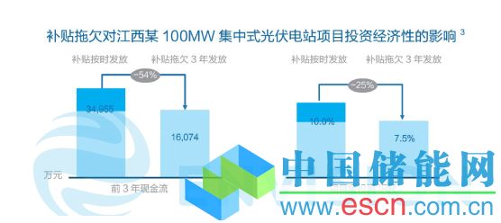 以江西某項(xiàng)目為例,補(bǔ)貼拖欠三年,現(xiàn)金流減少1.9億元,IRR嚴(yán)重下滑。