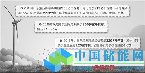 2015年,我國(guó)全年棄風(fēng)電量339億千瓦時(shí),同比增加213億千瓦時(shí),平均棄風(fēng)率15%,同比增加7個(gè)百分點(diǎn),其中棄風(fēng)較重的地區(qū)是內(nèi)蒙古、甘肅、新疆、吉林。對(duì)我國(guó)風(fēng)電產(chǎn)業(yè)來(lái)說(shuō),2000小時(shí)是個(gè)檻,如果利用小時(shí)低于這個(gè)數(shù),開(kāi)發(fā)企業(yè)的壓力就會(huì)增大。據(jù)中國(guó)風(fēng)能協(xié)會(huì)秘書(shū)長(zhǎng)秦海巖透露,2015年風(fēng)電總共因限電損失了300多億千瓦時(shí)。