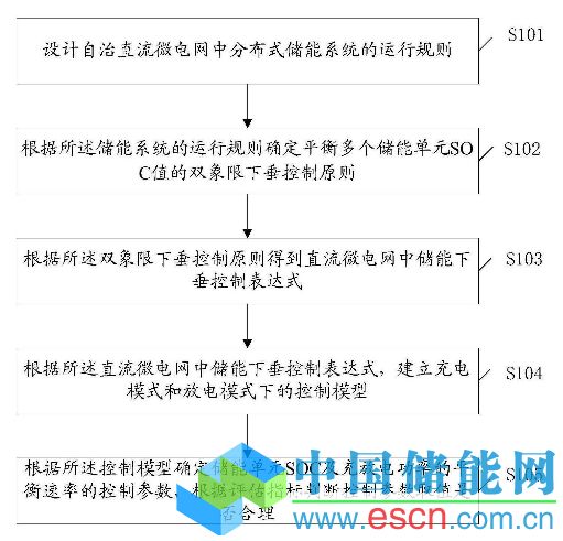 本發(fā)明公開(kāi)了一種自治直流微電網(wǎng)的分布式儲(chǔ)能SOC雙象限下垂控制方法,包括:設(shè)計(jì)自治直流微電網(wǎng)中分布式儲(chǔ)能系統(tǒng)的運(yùn)行規(guī)則;根據(jù)所述儲(chǔ)能系統(tǒng)的運(yùn)行規(guī)則確定平衡多個(gè)儲(chǔ)能單元SOC值的雙象限下垂控制原則;根據(jù)所述雙象限下垂控制原則得到直流微電網(wǎng)中儲(chǔ)能下垂控制表達(dá)式;根據(jù)所述直流微電網(wǎng)中儲(chǔ)能下垂控制表達(dá)式,建立充電模式和放電模式下的控制模型;根據(jù)所述控制模型確定儲(chǔ)能單元SOC及充放電功率的平衡速率的控制參數(shù),根據(jù)評(píng)估指標(biāo)判斷控制參數(shù)取值是否合理。本發(fā)明提高了儲(chǔ)能單元的利用效率、延長(zhǎng)其使用壽命,運(yùn)行更高效。