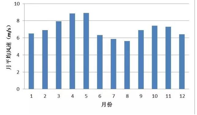 測(cè)風(fēng)塔70m高度風(fēng)速月變化曲線
