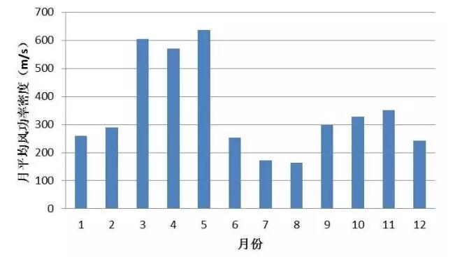 測(cè)風(fēng)塔70m高度風(fēng)功率密度月變化曲線